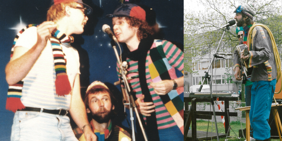 | Teun Tekkel was dan weer een alterego als kinderartiest, wereldberoemd in buurthuis de Zoutkeet in Hilversum. | |